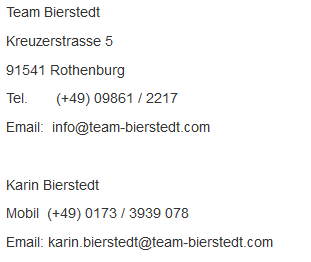 Team-Bierstedt.com ist eine unabhängige Website. Der Autor übernimmt keinerlei Gewähr für die Qualität der bereitgestellten Informationen. Haftungsansprüche gegen den Autor, welche sich auf Schäden materieller oder ideeller Art beziehen, die durch die Nutzung oder Nichtnutzung der dargebotenen Informationen bzw. durch die Nutzung fehlerhafter und unvollständiger Informationen verursacht wurden, sind grundsätzlich ausgeschlossen, sofern seitens des Autors kein nachweislich vorsätzliches oder grob fahrlässiges Verschulden vorliegt. Alle Angebote sind freibleibend und unverbindlich. Der Autor behält es sich ausdrücklich vor, die Daten ohne gesonderte Ankündigung zu ändern, zu löschen oder die Veröffentlichung einzustellen.